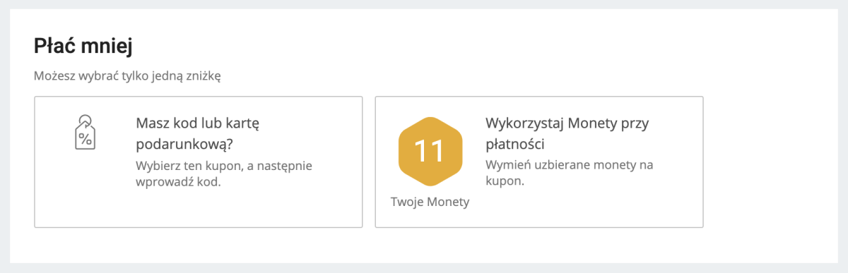 - Kliknij kafel "Wykorzystaj Monety przy płatności"