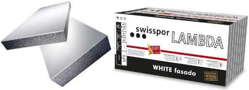 SWISSPOR LAMBDA WHITE FASADA - to pierwsze na rynku polskim zespolone płyty EPS nowej generacji, łączące w sobie zalety szarego i białego styropianu. Standardowo płyta jest stabilizowana ( nacinana ) w celu eliminacji naprężeń. Wykonanie siatki nacięć przeciwprężnych zapobiega powstawaniu naprężeń wewnętrznych i jest szczególnie zalecane w styropianie grafitowym przy grubości płyty powyżej 15 cm. Styropian LAMBDA WHITE FASADA swoje wyjątkowe parametry zawdzięcza stosowanemu do produkcji surowcowi z zawartością grafitu, który nadaje płytom w grubszej części ciemniejszy kolor i lepszą izolacyjność. Grubość białej warstwy EPS wynosi około 6 mm. Pozwala to na szlifowanie płyt bez utraty białej warstwy ochronnej, co w przypadku styropianu fasadowego jest czynnością stosunkowo częstą. Nie wymaga osłon przeciwsłonecznych podczas aplikacji. Na uwagę zasługuję również wyjątkowa stabilność wymiarowa płyt. Produkt dedykowany dla budownictwa pasywnego i energooszczędnego. Potwierdzają to: Certyfikat Instytutu Budownictwa Pasywnego, oraz wiele nagród branżowych i konsumenckich jakimi został uhonorowany ten produkt. LAUR KONSUMENTA 2018 !!!